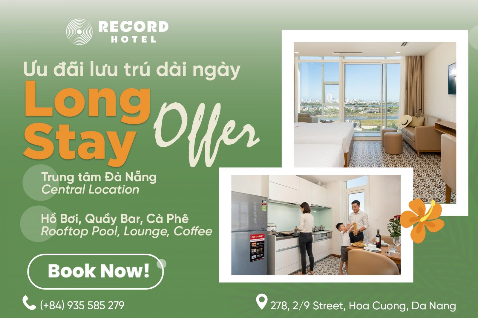 -> Limited availability – contact Record Hotel Fanpage or sale number: 0935 585 278 now to secure the best long stay deals in central Da Nang.