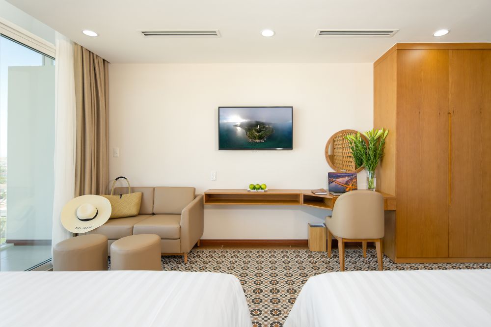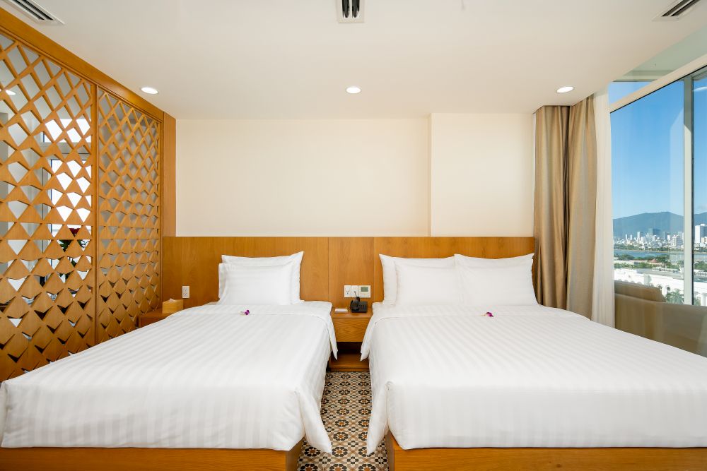 Phòng đôi rộng rãi, được trang bị máy lạnh, TV màn hình phẳng, minibar, khu vực tiếp khách và tủ quần áo. Phòng tắm riêng có vòi sen, máy sấy tóc, dép và đồ vệ sinh cá nhân miễn phí. Từ phòng, khách có thể ngắm nhìn toàn cảnh hồ thơ mộng. Phòng được bố trí 1 giường đôi.